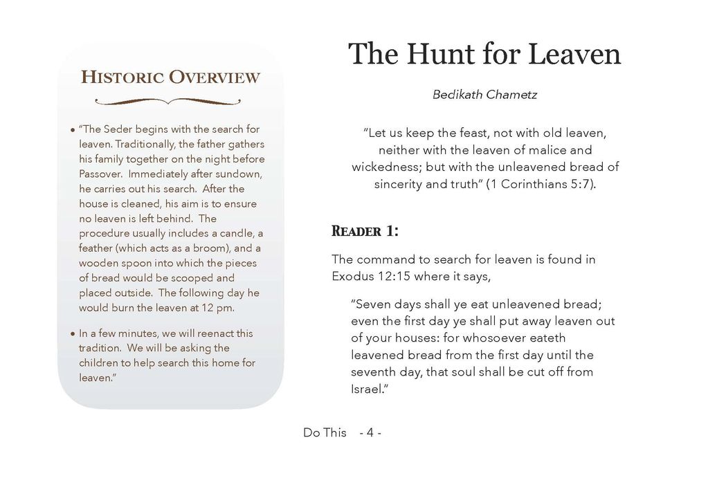 The next few slides illustrate the interaction that occurs during the Seder between the leader, those selected to read and the guests. At the exact hour every Jewish home burned their leaven, God supernaturally darkened the sun for three hours. Imagine how this must have affected every one as they stood by their fires and darkness fell over the land.