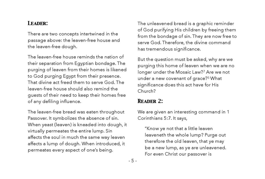 The leader's guide covers every detail needed to perform a Seder, but it also provides references and study notes to help the careful student learn more about the feasts of the Lord.